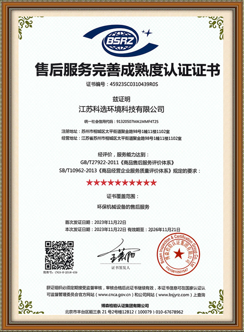 售后服务认证证书