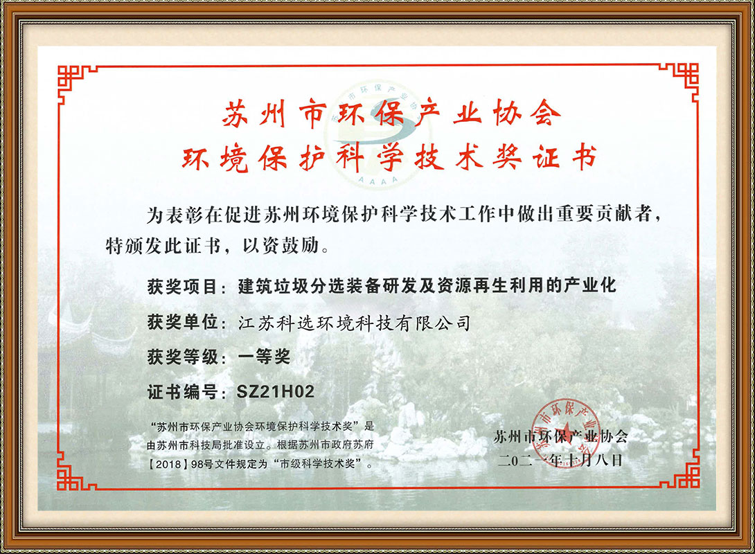苏州市环境保护科学技术奖一等奖