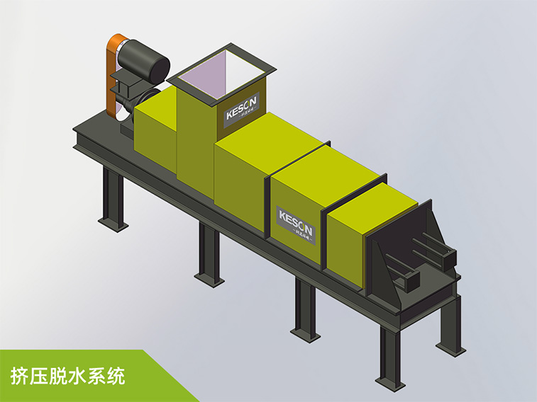 挤压脱水系统是通过挤压,使物料的体积在筛网中逐渐变小,分离含水有机质中的水分。