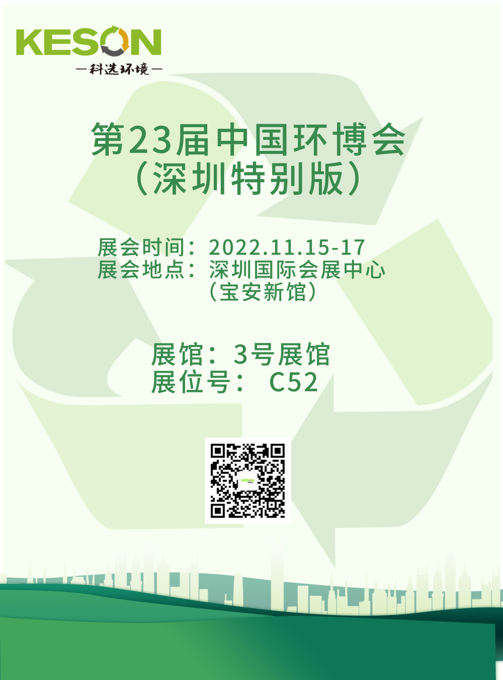 中国环博会在2022年疫情反复的状态下,为填补环保行业大型展会活动的空白及行业线下展示需求,于2022年11月15-17日在深圳国际会展中心(宝安新馆)与2022中国环博会深圳展合并举办“2022第23届中国环博会(深圳特别版)”,同期“2022中国环境技术大会”也将同步移至深圳,深层探讨环境产业疫情下转型升级战略与行业未来发展趋势。